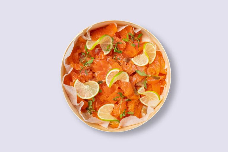 La fameuse truite gravlax préparée par nos chefs cuisiniers. La recette est secrète et le résultat extraordinaire. Informations complémentaires :  Commande au plus tard 48h à l’avance. Des frais de livraison sont à prévoir selon la zone (entre 16€HT et 42€HT). Pain non inclus.