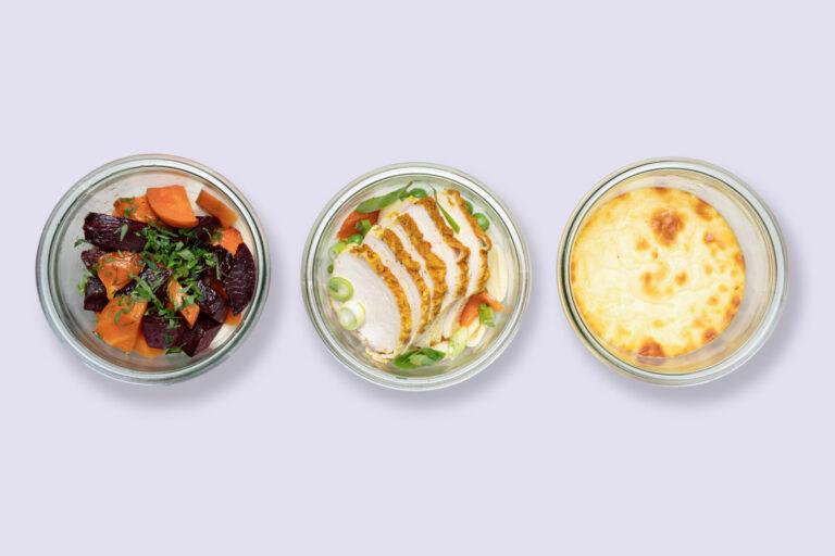 • Crémeux de panais, légumes anciens rôtis au beurre noisette. • Poulet au curry et lait de coco, gnocchettis, carottes rôties et petits pois. • Flan pâtissier à la vanille. Inclus : kit couverts inox, miche de pain. Allergènes : Gluten, lactose, œuf. Commande possible jusqu’à la veille 18h pour une livraison du lundi au vendredi et jusqu’au jeudi 18h pour une livraison le week-end. Sous réserve de disponibilité.