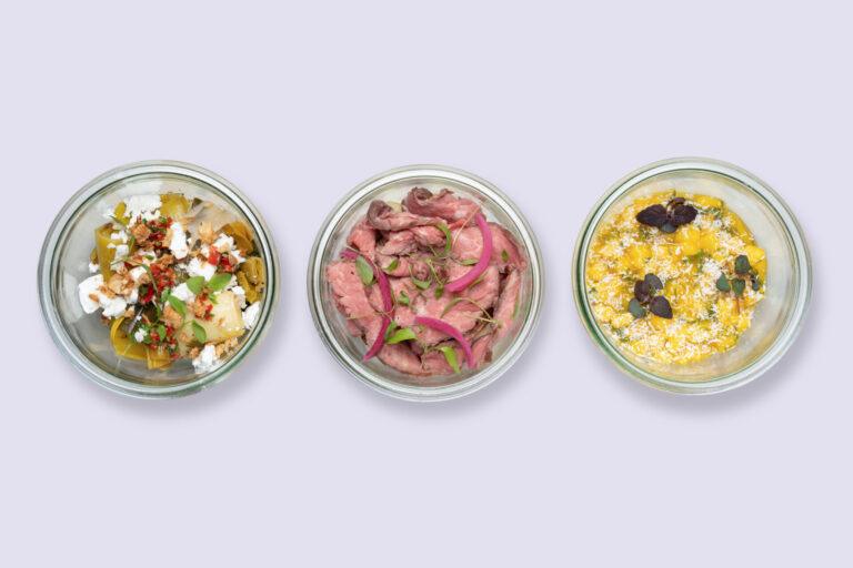 • Poireaux rôtis, chimichurri et feta. • Mi-cuit de bœuf, pommes grenailles, sauce gribiche et pickles d’oignons rouges. • Flan à la mangue, mangue fraîche et menthe, noix de coco râpée. Inclus : kit couverts inox, miche de pain. Allergènes : Gluten, lactose, œuf, moutarde, sulfites. Commande possible jusqu’à la veille 18h pour une livraison du lundi au vendredi et jusqu’au jeudi 18h pour une livraison le week-end. Sous réserve de disponibilité.