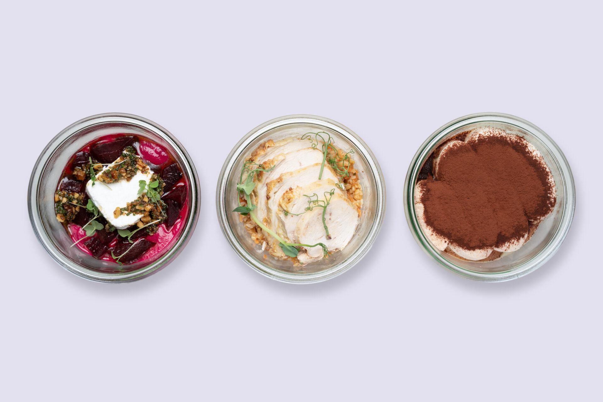 • Œuf mayonnaise au curry mango, pois gourmands et quinoa rouge. • Betteraves rôties, boulgour et labneh. • Cheesecake à la vanille, rhubarbe pochée à la fleur d’oranger. Inclus : kit couverts inox, miche de pain. Allergènes : Gluten, lactose, soja, œuf, moutarde, sulfites. Commande possible jusqu’à la veille 18h pour une livraison du lundi au vendredi et jusqu’au jeudi 18h pour une livraison le week-end. Sous réserve de disponibilité.